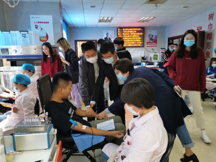 现场同学们献血热情高涨,依次进行体检、信息登记、血液检验、静脉采血、领取慰问品等环节,安静有序地配合医护人员完成了献血工作。公司辅导员、员工志愿者服务在一线,为献血同学做好服务保障工作。