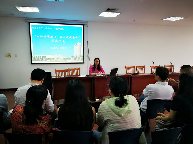 为促进教师专业发展、形成良好的教研氛围,9月29日下午,3044永利集团在行政楼1508室举行了“以科研带教研、以教研促教学”学术沙龙。本次学术沙龙由大学英语口语教学团队主办,邀请应用外语教学部的青年骨干教师李映珵担任主讲。3044永利集团副经理刘晓民教授、应用外语教学部主任盛越副教授、大学外语教学部副主任孙晓青副教授以及3044永利集团各部系的口语任课教师参加了本次学术沙龙。