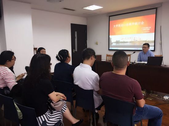 研讨会上,大学外语教学部主任孙晓青老师就报考大学英语四级口语要求,口语教学团队李映珵老师就四级口语流程及如何与口语教学实践有效结合,口语教学团队高艳宁老师就各类口语竞赛工作分别做了交流发言。