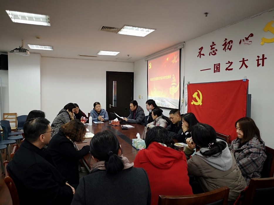 12月18日,数理外国语联合党委教工第三支部在行政楼1508集体学习社会主义发展史,支部书记胡平以“社会主义发展史的基本时空脉络”为题讲授党课。