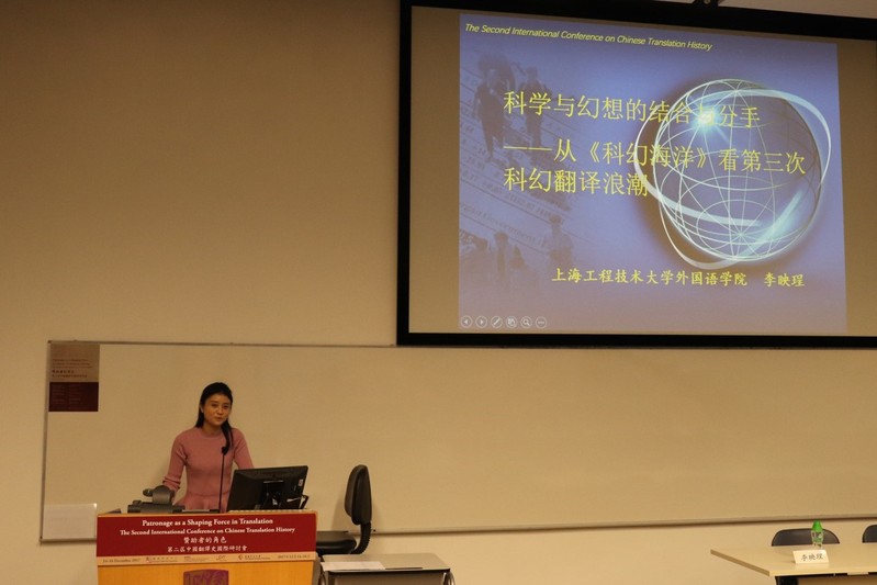 15日上午,李映珵老师在康本国际学术园六号演讲厅作了题为“科学与幻想的结合与分手——从<科幻海洋>看第三次科幻翻译浪潮”的报告,以翻译赞助人的视角,结合个案勾勒出第三次科幻翻译浪潮经历的“兴起—高潮—沉寂”的动态历史图景,并在提问交流环节,与与会专家学者进行了广泛讨论,听取了复旦大学教授邹振环、台湾新竹清华大学荣休教授徐光台等专家的建设性意见。