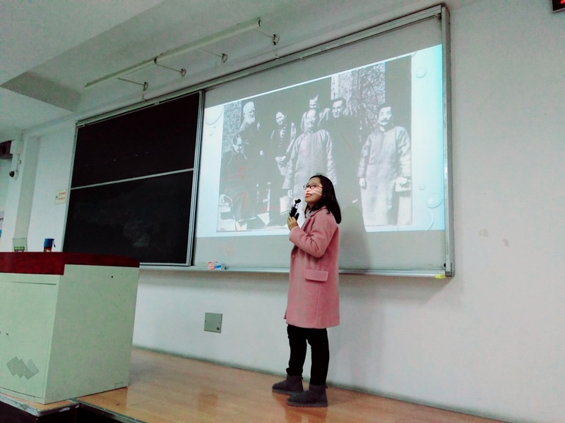 在公司领导的指导和翻译系全体教师的支持下,王珏老师经过精心准备,首先为大家介绍了林语堂的形象,使同学们对这位文学大家有一个感性的认识。接着,又为大家介绍形象学以及翻译研究等方面的一点理论知识,激发同学们的科研兴趣。然后,结合林语堂的英文作品,深入浅出地分析了林语堂对外传播了哪些中国形象,以及他是使用何种译创手段来塑造这些中国形象。最后,又从传播效果的角度探讨林语堂对中国形象的成功塑造以及对当下中国文学外译的现实启示。虽然王老师的讲座具有一定的理论深度,但她的讲述生动有趣,逻辑清晰,运用音频、图片等多媒体手段,让所有在场学子受益匪浅。