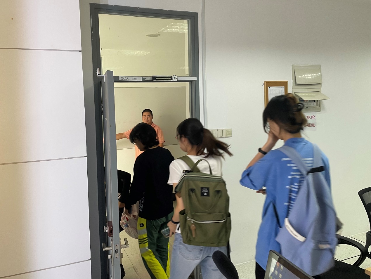 演练开始前,实验室老师对参演师生进行了实验室日常使用安全教育和疏散演练要点的辅导,并在通道内张贴了逃生路线指示。随着警铃的鸣响,演练正式开始。通讯联络组迅速通知师生疏散,疏散引导组在楼梯口有序引导师生撤离。整个疏散过程井然有序,最终所有参与演练的师生均安全疏散至集合地点。