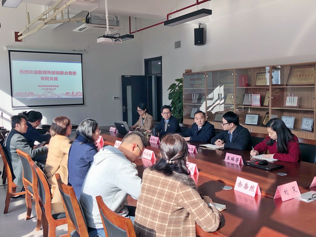 为落实巡察整改,对标样板,进一步提升党支部建设水平,3月26日,数理外国语联合党委书记钱慧敏带领组织员、支部书记、支部委员一行赴城市轨道交通公司学习全国样板支部建设经验。城市轨道交通公司党委书记柴晓冬热烈欢迎来访一行,公司党委副书记盛知恒,副经理、教工第一党支部书记郑树彬,通信信号系主任、教工第一党支部副书记魏丽丽参加交流会。