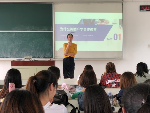 李雪苗老师首先分享了两位学长的实习经历、励志故事,引发同学们思考“为什么需要产学合作教育?”这一问题;又现身说法,谈到了自己曾经的工作经历和体会。“时间是唯一对每个人都公平的资源”,要想在未来有收获,就得在此时此刻确定目标,主动出击。
