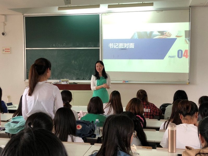 吴蝶老师分享了自己在海外的留学经历,告诉我们心怀理想、把握机会的重要性;并介绍了美国韦伯州立大学的合作教育项目,鼓励员工们大胆去尝试。之后,曹雪莲同学作为员工代表为同学们讲述了自己的暑期实践经验并总结了不少心得体会在会上进行分享。