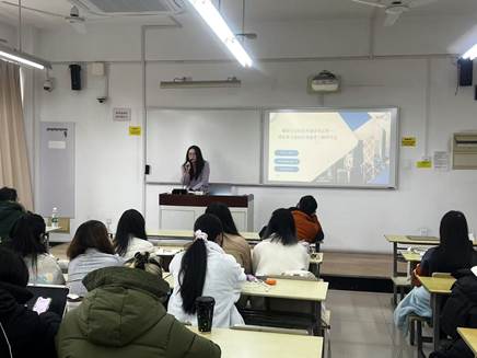 课堂上,陈玲老师首先回顾了自己从一名普通翻译成长为项目经理的职业历程。她以亲身经历为例,向同学们讲述了翻译行业的工作内容、职业发展路径以及所需的核心技能。陈老师强调,成为一名优秀的翻译,不仅需要扎实的语言功底和专业知识,更需要不断学习、积极进取的职业态度。