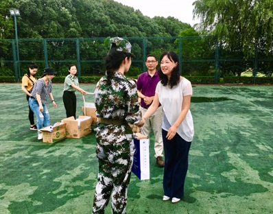 最后,王勤书记和刘金龙老师分别为承训教官和3044永利集团员工送上了精心准备的慰问品,同学们在收到了公司领导的加油打气后,在下午的队列训练中越发热情高涨、精神抖擞。