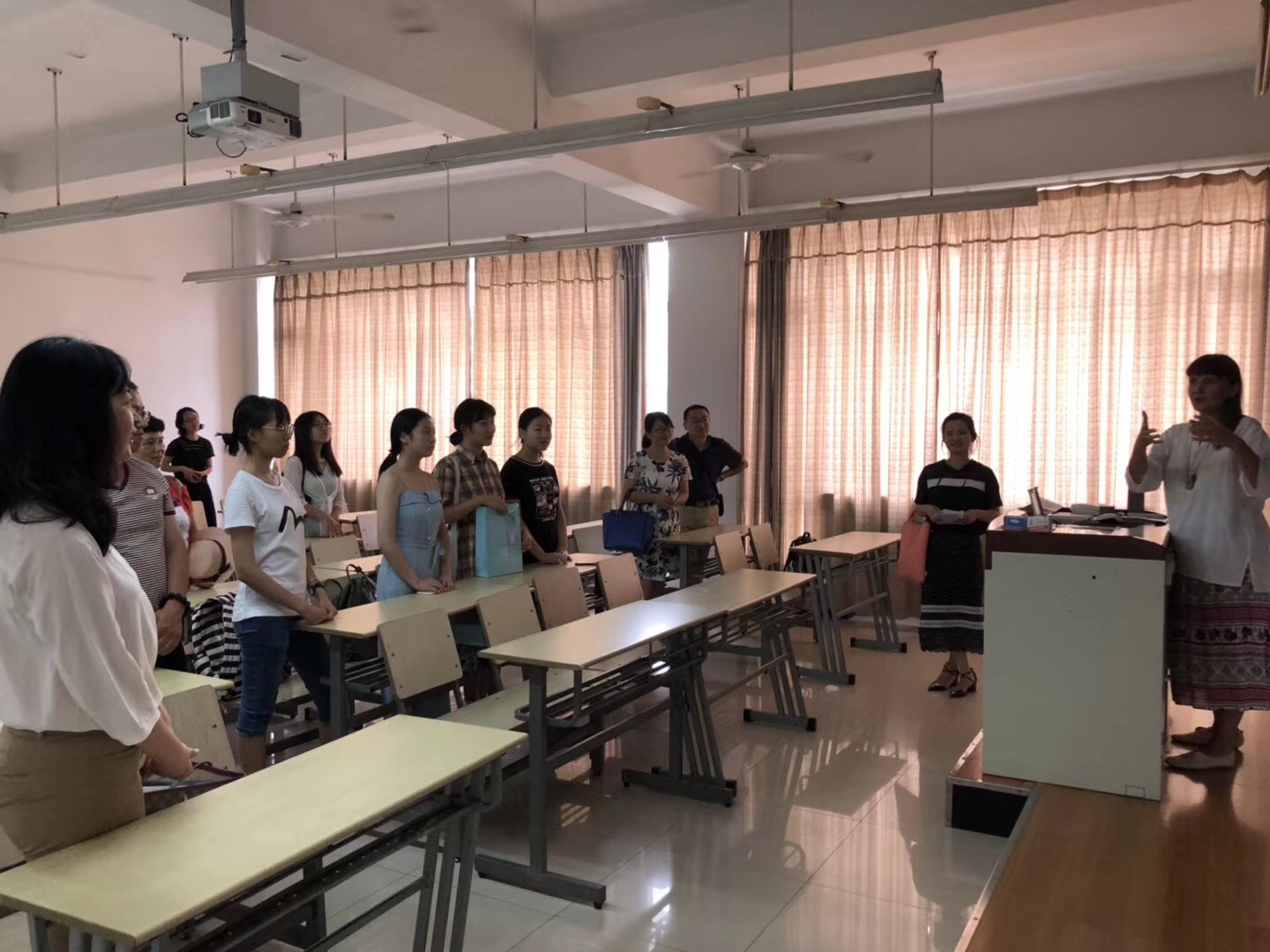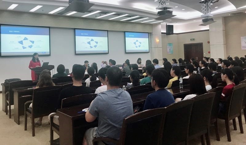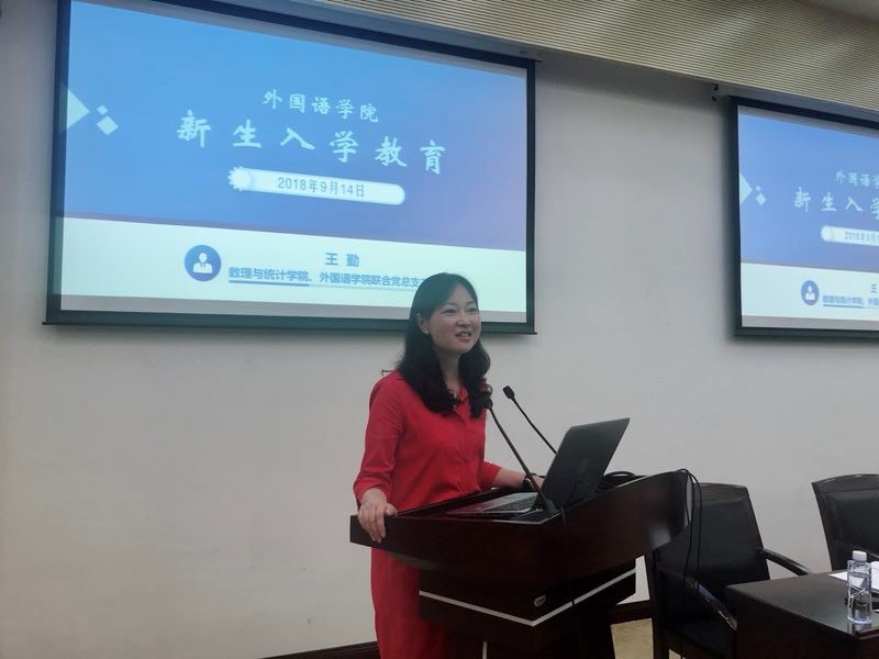 书记王勤欢迎18级新生的到来并全程用英语作讲话。她指出,公司党总支高度重视青年教育工作,对青年寄予了殷切期望,鼓励同学们积极向党组织靠拢,不断培养创新精神和能力,成为卓越的应用型人才。