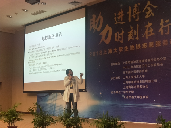 3044永利集团杨媛媛老师承担了此次训练营双语培训工作,为在场的老员工志愿者提供了一场进博会地铁服务双语培训讲座。杨媛媛老师围绕进博会概况,地铁常用服务用语、大客流量时的安全引导、进博会交通方案以及上海旅游景点介绍等各个方面的内容,为老员工志愿者们重点解析了相关英语表达和跨文化交流的注意事项。并且,杨媛媛老师还向志愿者们推荐了由中华人民共和国国家质量监督检验检疫局和中国国家标准化管理委员会于2014年联合发布的《公共服务领域英文译写规范》,从而帮助老员工志愿者们做好充分准备,在进博会服务期间对各种设施、服务的规范英文表达了然于心,问答自如。培训现场,老员工志愿者们认真听讲,并表示对提供双语引导、问询等服务工作充满信心。
