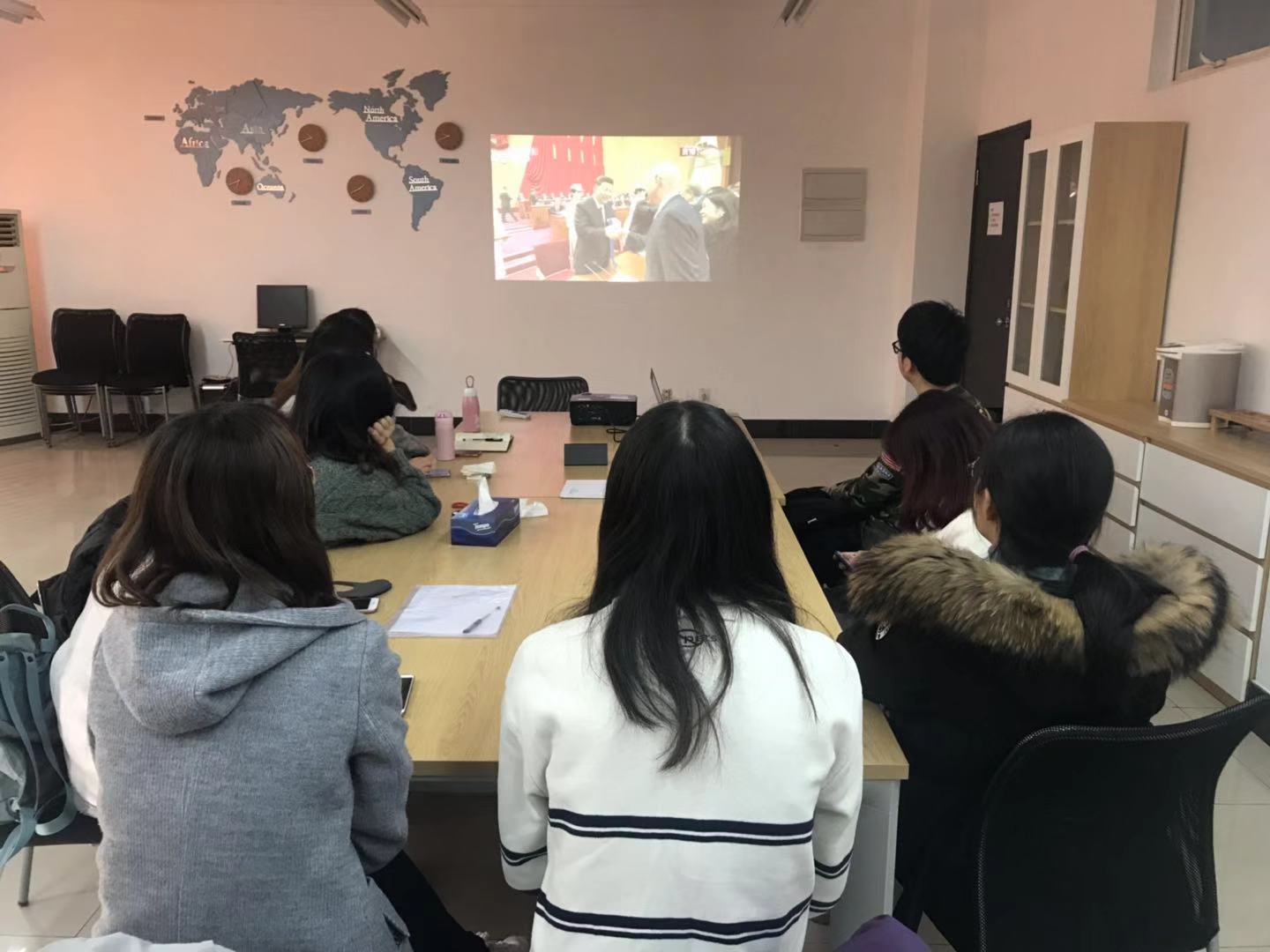 3044永利集团组织全院员工干部在教学楼D111室集中收听收看大会实况转播,认真学习习近平总书记重要讲话精神,向改革开放40周年致敬。