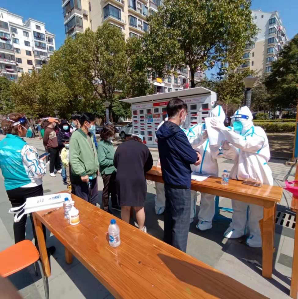 “阿姨,做核酸前先要准备好二维码,可以来这边扫码登记。”公司党员教师叶红卫对参加社区核酸检测的阿姨说,“现在排队人多,口罩一定要带好,请保持一米社交距离。”叶红卫老师是数理外国语联合党委教工第四党支部书记,他所居住的九里亭街道是本次疫情的重点管控区域,在得知小区封闭式管理后,他第一时间主动联系居委会,加入社区防疫志愿者队伍,协助开展疫情防控工作。