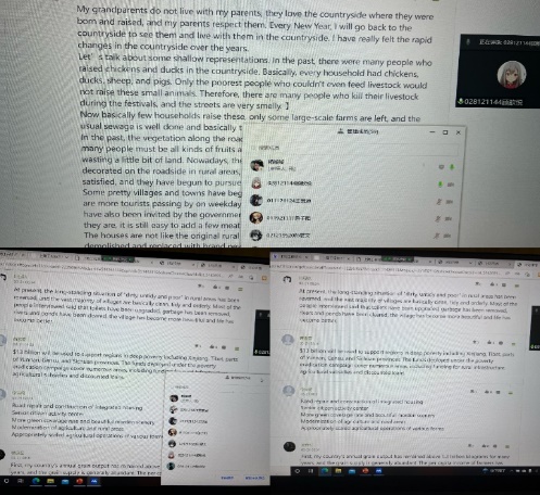 3044永利集团教师还积极把先进教学理念融入线上英语教学,杨媛媛基于“产出导向法”开展大学英语口语教学,她以“学用一体”为主要教学理念,贯彻“驱动”“促成” 和“评价”三个环节开展在线教学。比如,“驱动”员工对“乡村振兴”相关内容的收集,形成内容与语言上的同步输入;通过开放式讨论,相互借鉴,获得“促成”;再通过课堂口语表达练习和汇报,做出“评价”。将知识输入、同步学习成果输入转化为有效的口语输出,员工有表达的欲望,体会到成就感。亓明俊老师课上结合抗击疫情等音视频和文本材料,通过启发式教学方式,要求员工利用互联网,对课上遗留问题进行广泛和深入的资料搜集和整理,形成个人的思考,开展汇报交流,形成共同的理解。