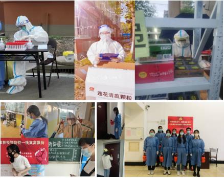 支部党员发挥先锋带头作用,积极参加抗击疫情志愿服务工作,用大无畏的精神奋战在社区和校园的防控岗位上中。党支部书记刘笑老师,加入居委临时党支部,发挥自身能力,帮助居委线上线下两条线开展信息统计和核酸检测等工作。在小区封控初期,协助居委负责小区400多户住户的生活物质线上团购信息整理,为了能让居民第二天能拿到物质,她经常工作到深夜12点,第二天往往来不及吃饭又加入物资运行的队伍中。4月13号,冒着大雨,仍坚守在志愿者岗位上,将快递送到及时居民手里;5月3号,冒着30度高温,刘笑老师全副武装穿着大白,手带两层胶皮手套,2小时工作下来,衣服都湿透,展现了一名有担当能战斗年轻党员先锋形象。目前,她累计参加25次小区志愿服务。支部党员陈奋、郑铭铭同志自4月3日就担任楼层长,累计志愿服务25次,楼层封控三天里全程组织参与楼层员工三餐保障,组织楼层同学进行核酸检测,领取楼层物资、进行楼宇消杀等,她还积极参加了校级核酸检测志愿者服务活动、六期物资整理,尽己之能,为疫情防控奉献力量。杨爽同志积极配合在校值守的辅导员整理疫情防控物质物资,将物资分类整理,确保每一位同学都可以领到物资。刘海侠同志在是六期的消杀志愿者,她认真开展在楼梯道和宿舍进行消杀。韩路遥、舒娇红、文倩、涂晶、翟国庆、丁阳、唐坤等党员同志在此次抗疫中,以实际行动展现青春,践行入党誓词。