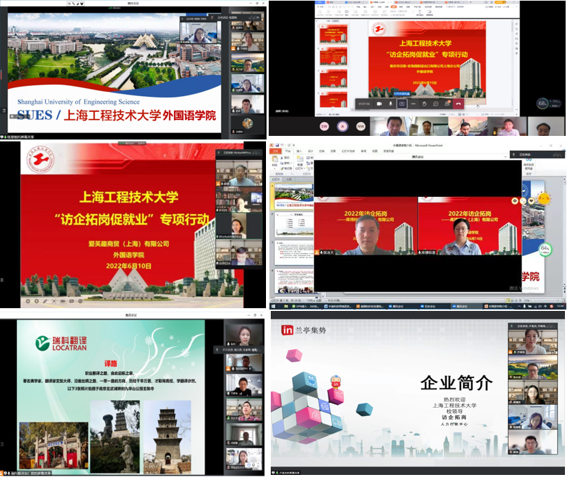 6月15日下午,钱慧敏书记带队在线走访上海兰亭集势信息技术有限公司,翻译系主任巫元琼、就业辅导员齐晓悦和2名2022届应届毕业生共同参加。钱慧敏书记重点介绍了公司特色、人才培养体系、翻译专业定位和员工就业工作,并对2名毕业生大力推荐,表达了多方面加强校企双方交流合作的美好愿景。上海兰亭集势信息技术有限公司人力资源总监路总和校招总管卢主任分别就公司发展和人才需求进行介绍,表示将培养好公司推荐的优秀毕业生。