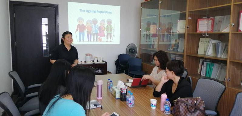王萍主任首先对顾老师专程在赛前应邀前来为公司教师做指导、交流表示欢迎和感谢。顾秋蓓老师是上海市“五一”劳动奖章得主、上海市教学能手,曾获得第二届上海市青教赛特等奖,第三届“外教社杯”全国高校外语教学大赛上海赛区特等奖。