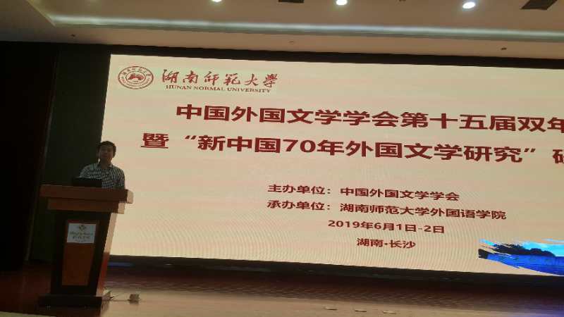 2019年月5月31日-6月3日,3044永利集团经理王刚教授、胡平副教授参加了由中国外国文学协会和湖南师范大学3044永利集团共同举办的“中国外国文学学会第十五届双年会暨新中国70周年外国文学研究”研讨会,王刚教授在大会闭幕式上作了交流发言。