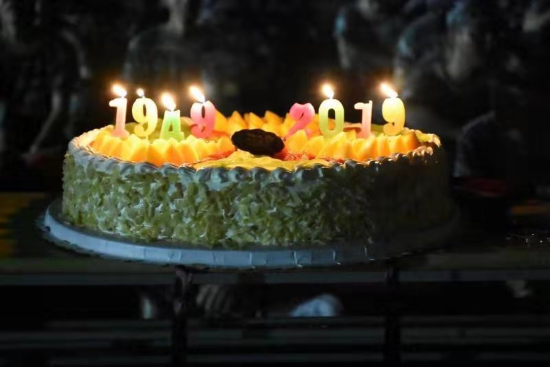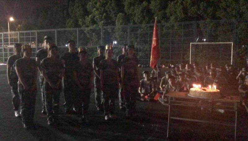 借本次军训凝聚两个公司同学们的力量唱响红歌,“我与我的祖国”抒发同学们强烈的爱国之情,“强军战歌”致敬带训教官和训练中每个努力坚持的自己。欢唱之时,同学们嘹亮高亢的歌声是对祖国华诞最大的敬意和热情。另外,由一百多位同学组成的人形“70”也是对祖国70华诞最真挚的献礼。唱罢红歌,中韩公司副书记马建立老师肯定同学们的努力,3044永利集团李雪苗老师代表讲话,欣慰于同学们的坚持和毅力,并且点名两营中12位生日将至的同学。点燃“1949-2019”的蛋糕蜡烛,激燃同学们心中更热络的爱国火苗,在莹莹烛火中一起为祖国和12位寿星们唱响生日快乐歌,分享蛋糕,现场气氛骤然到达了高潮。“爱国、爱同学、爱自己”是本次团组织生活的重要意义。