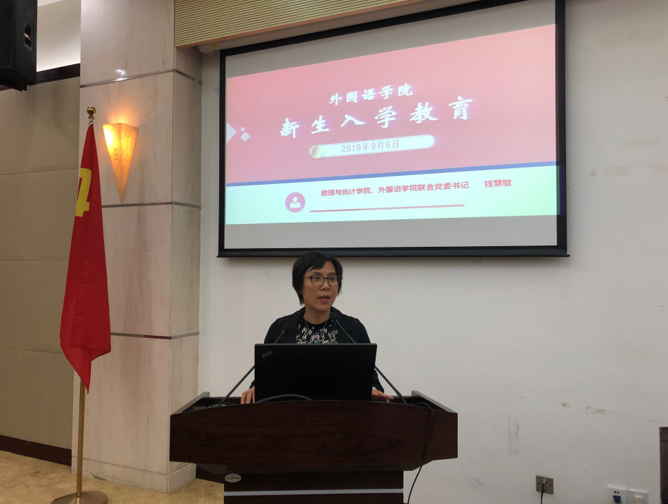 钱慧敏书记欢迎19级新同学的到来并为新生作了入学教育。她指出希望同学们能尽快融入工程大大家庭,实现角色的转变;鼓励大家勇于实践,培养创新精神和创新能力,践行、发扬校训,展现外院学子的青春风采;积极地向党组织靠拢,锻炼自己的能力、成为对社会有贡献的人才,并祝愿60名学习在外院度过精彩的四年老员工活。