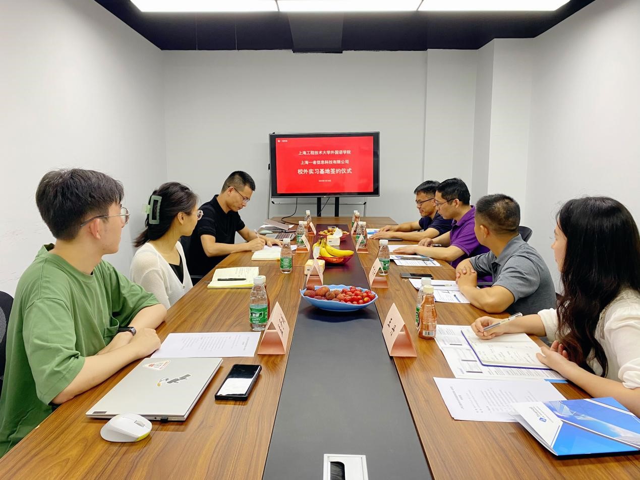 交流学习会上,上海一者信息科技有限公司CEO张井先生详细介绍了公司的发展历程和主要业务范围,公司的翻译技术和语料库备受行业认可,公司高度重视校企合作和人才培养。刘金龙副经理介绍了公司的办学历史、学科特色、团队力量、产学研合作等情况,重点介绍了近年来公司的校企合作情况,希望通过这次交流学习,为员工提供更多的实践平台和就业机会,同时也为教师教学和科研提供更多技术和资源平台的支持。公司将申报翻译专业硕士点作为今年的重点工作,双方就如何开展工程语料库建设达成了初步合作意向。双方签署了校外实习基地和产学合作教育基地协议,公司教师将有机会深入公司了解实践环境,公司也将从公司的专业知识和创新力量中受益。