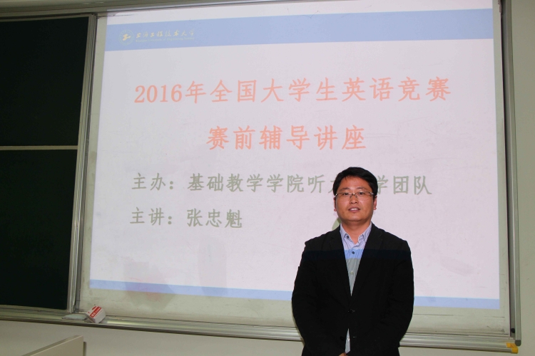 2016年全国老员工英语竞赛(初赛)将于4月10日举行,基础教学公司很重视这次竞赛,得到了各位领导的重视。为了让公司参赛员工更好地了解竞赛题型,掌握做题方法和技巧,基础教学公司大学英语听力教学团队于3月30日举行了竞赛辅导讲座。该讲座由富有竞赛辅导经验的大学英语听力教学团队的张忠魁老师主讲。