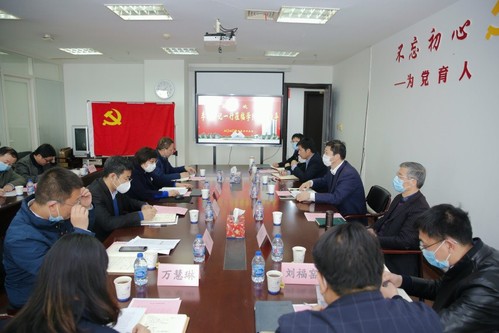 在行政楼1308会议室,数理外国语联合党委钱慧敏书记以“党建引领促发展、不忘初心谋新篇”为主题汇报了两公司疫情防控,复工复学、基层党建、厉行节约、转型发展和十三五规划完成、十四五规划设想等方面的情况。王刚经理和殷志祥经理汇报了学科定位和硕士点申报等方面情况。李江书记认真听取了汇报,对两公司的工作和成绩表示肯定,并提出四点要求。一是要进一步探索联合党委的基层党建工作体系,发挥联合联动作用,落实落细“三大主体责任”。二是要坚定不移的走转型发展的道路,立足于全校本科基础教学工作,加强科研和团队建设,凝聚方向,高水平产出,提升社会声誉,为公司特色发展服务。三是加强团队队伍建设,引培并举,注重青年干部的培养和储备,建立一只勇于担当团队队伍。四是提升在公司国际化办学中引导能力,加强与其他公司、部门的合作,推进国际化建设。