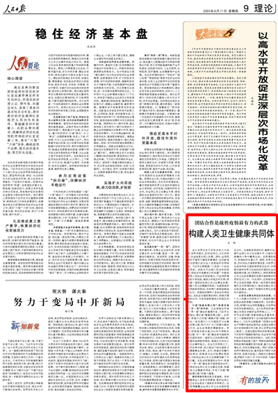 6月11日,《人民日报》理论版刊发了公司经理王刚教授撰写的文章《构建人类健康共同体》,这是公司自建立以来第一篇在《人民日报》理论版发表的文章,是公司团队建设的历史性突破!