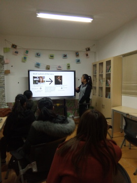 首先,由代表同学上台分享自己想要推荐的书与电影,讲解书中精彩的内容。同学们被书中的精彩内容所吸引,沉浸其中。
