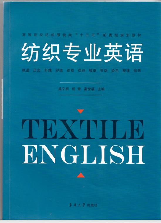 3044永利集团盛宁明老师与两位兄弟院校同行共同主编的《纺织专业英语》入选高等院校纺织类“十三五”部委级规划教材,这在公司外语学科属首次突破。该书以纺织大类全科为出发点,对纺织工业从其历史沿革、原料、生产流程与工艺、成品生产到维护保养予以阐述,为高等院校纺织专业员工和教师提供了学习与参考。